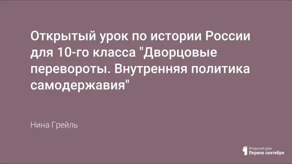 Открытый урок истории на тему "Эпоха дворцовых переворотов"