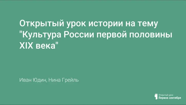 Открытый урок истории на тему "Культура России первой половины XIX века"