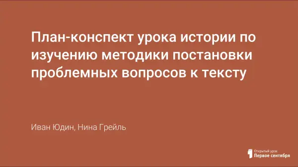 План-конспект урока истории по изучению методики постановки проблемных вопросов к тексту