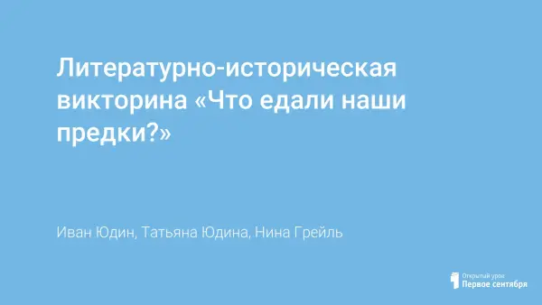 Значительную часть нашей жизни мы проводим за обеденным столом. Мы едим, лопаем, трескаем, вкушаем, уплетаем за обе щеки, глотаем... Какую бурю эмоций вызывает вид, запах, вкус аппетитной снеди, упоительных яств, восхитительных лакомств! Узнать о том, «что едали наши предки», помогает разработанная нами литературно-историческая викторина.