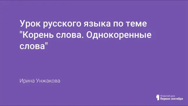 Урок разработан по технологии развивающего обучения Л.В. Занкова с применением ИКТ. На уроке осваивается понятие «корень слова» и «однокоренные слова». Дети учатся подбирать однокоренные слова к слову.
