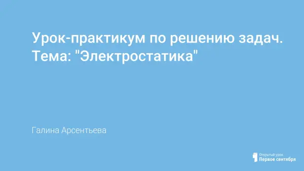 Урок по теме «Электростатика» проводится как двухчасовое занятие в профильном классе. Формируется система знаний по теме; основное внимание уделяется решению задач на перераспределение электрических зарядов, взаимодействие тел, конденсаторы, движение заряженного тела в электростатическом поле.