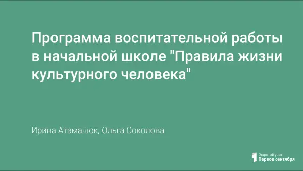 Программа воспитательной работы в начальной школе "Правила жизни культурного человека"