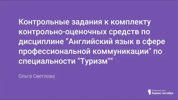 Предлагается ряд контрольных заданий для проверки текущих знаний студентов по дисциплине "Английский язык в сфере профессиональной коммуникации". Основное внимание данной дисциплины уделяется усвоению лексического материала. Представленные тестовые задания ориентированы на проверку лексики. Для их выполнения требуется наряду с усвоенной лексикой еще и знание английской грамматики для перевода предложений с русского на английский и написание делового письма.