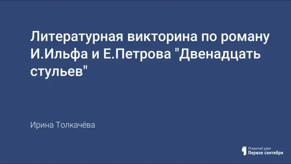 Викторина по роману "Двенадцать стульев" расширяет рамки школьной программы по литературе, побуждает проявить интерес к произведениям этих талантливых писателей. Мероприятие развивает творческие способности учеников, учит внимательнее читать текст произведения, замечать и запоминать детали и подробности. Чтение романа и работа с текстом для подготовки к викторине позволяют расширить представление о юморе, сатире, сарказме; оценить язык произведения, понять, почему многие высказывания персонажей стали крылатыми фразами.