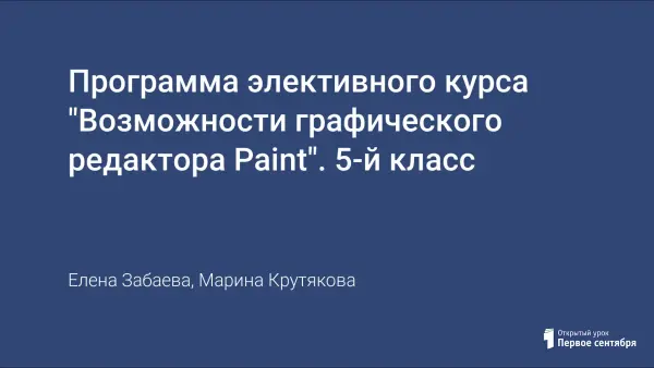 Программа элективного курса "Возможности графического редактора Paint". 5-й класс