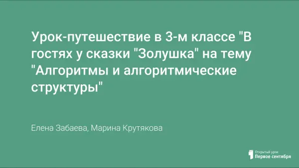 Урок-путешествие в 3-м классе "В гостях у сказки "Золушка" на тему "Алгоритмы и алгоритмические структуры"