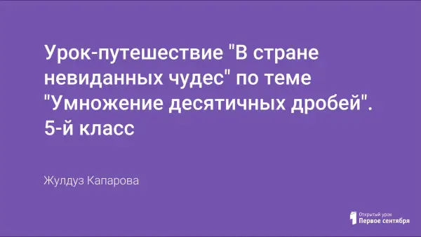 Подробный план-конспект урока по теме «Умножение десятичных дробей» в форме путешествия, сопровождается презентацией. Будет интересен как детям яркостью и неординарностью оформления учебного материала, так и учителям – содержанием материала и разнообразием видов деятельности.