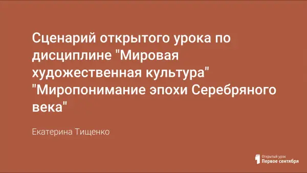 Урок призван раскрыть суть философии миропонимания Серебряного века, познакомить с персоналиями периода, воспитывать художественное образное мышление.