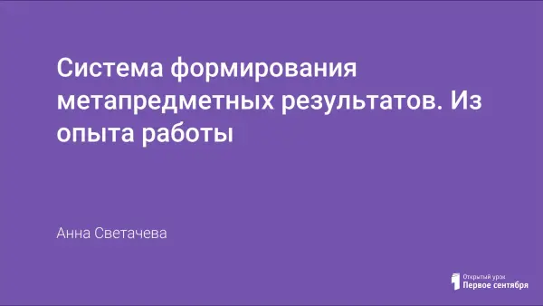 Автор представляет свою систему работы по формированию метапредметных результатов. Вы заметите элементы хорошо вам знакомые, многие из которых вы используете в своей деятельности. Задача статьи показать, как эти элементы выстраиваются в определённую целостность, единство, то есть в систему.
