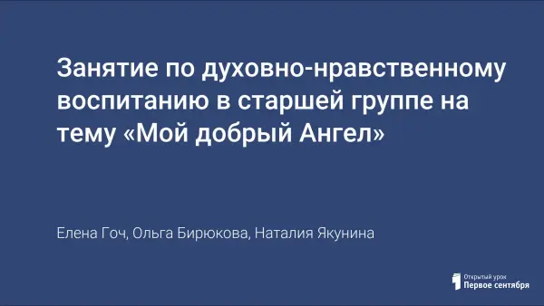 Занятие по духовно-нравственному воспитанию в старшей группе на тему «Мой добрый Ангел»