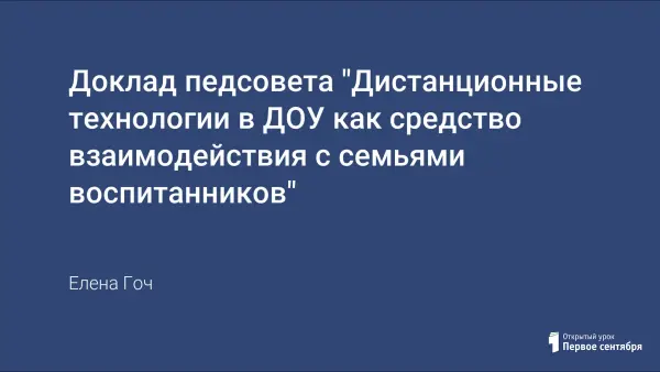 В настоящее время дистанционные формы работы в ДОУ становятся все более актуальными. В онлайн-режиме проходит в основном общение педагогов с родителями в связи санитарными ограничениями. В статье рассмотрены разнообразные дистанционные формы взаимодействия с семьями воспитанников, которые можно организовать в детском саду с учетом действующих нормативных документов.