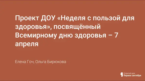 Проект ДОУ «Неделя с пользой для здоровья», посвящённый Всемирному дню здоровья – 7 апреля
