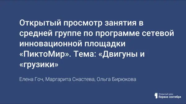 Открытый просмотр занятия в средней группе по программе сетевой инновационной площадки «ПиктоМир». Тема: «Двигуны и «грузики»