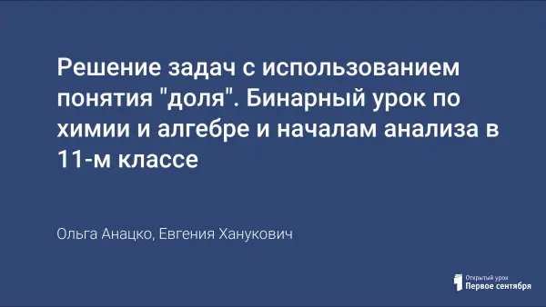 Решение задач с использованием понятия "доля". Бинарный урок по химии и алгебре и началам анализа в 11-м классе