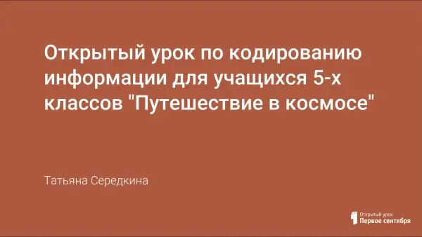 Открытый урок по кодированию информации, на котором в увлекательной форме происходит знакомство учащихся 5-х классов с понятиями кода, кодирования, декодирования через названия планет Солнечной системы. Учащиеся узнают также о роли кодирования информации в жизни человека, способах кодирования. Методы обучения, используемые на уроке: беседа с применением игровой технологии.
