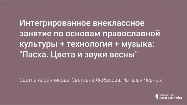 Интегрированное внеклассное занятие по основам православной культуры + технология + музыка: "Пасха. Цвета и звуки весны"