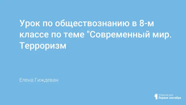 Современный мир настолько непредсказуем и необычен , наряду с надеждами о прекрасном будущем мы встречаемся порой с неразрешимыми проблемами , которые ставят в тупик целые государства. К таким проблемам можно отнести проблему терроризма. Этот урок можно использовать и как внеклассное мероприятие.