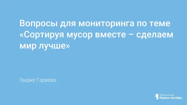 Представлены вопросы для мониторинга по теме «Сортируя мусор вместе – сделаем мир лучше».