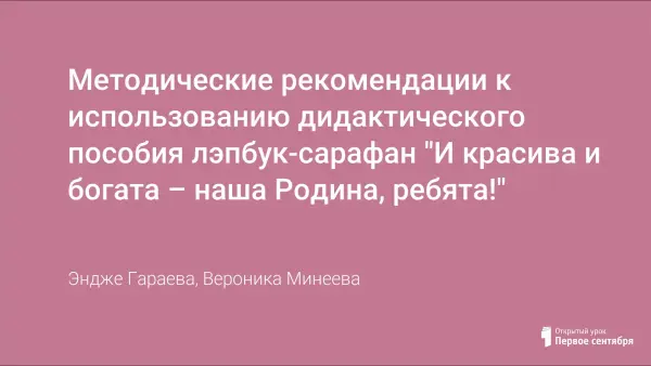 Методические рекомендации к использованию дидактического пособия лэпбук-сарафан "И красива и богата – наша Родина, ребята!"