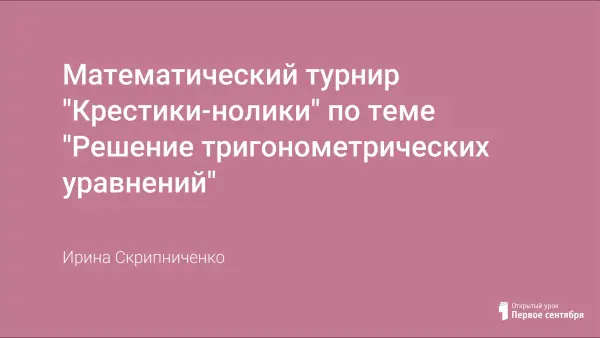 Основой данной игры является классическая игра в крестики-нолики. Данную игру целесообразно проводить завершающим этапом при изучении темы «Тригонометрические уравнения».