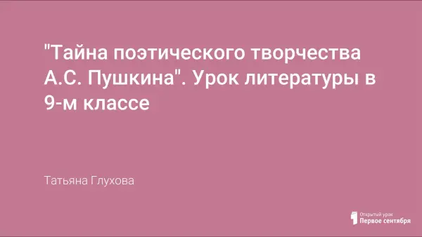 Урок литературы в 9-м классе ставит целью показать сложность художественного мира А.С. Пушкина; формировать навыки анализа поэтического произведения, развивать эстетический вкус.