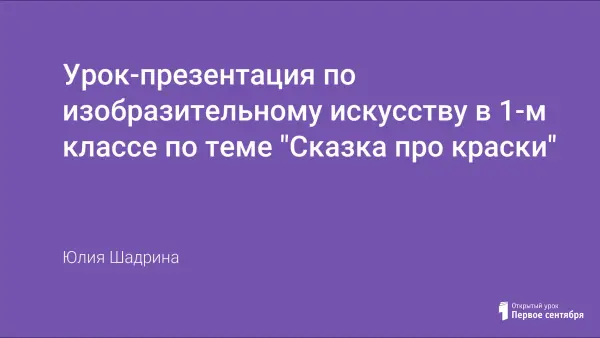 Урок знакомит детей с названиями цвета красок, получаемыми при их смешивании. При этом учащиеся совершенствуют навыки работы с краской, кистью, развивают зрительную память, цветовую зоркость. Учебный материал подаётся в виде мультимедийной презентации.