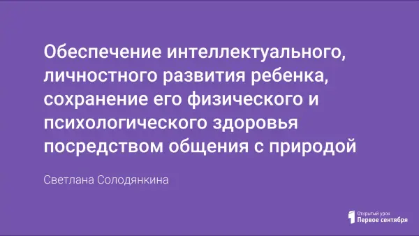 Обеспечение интеллектуального, личностного развития ребенка, сохранение его физического и психологического здоровья посредством общения с природой