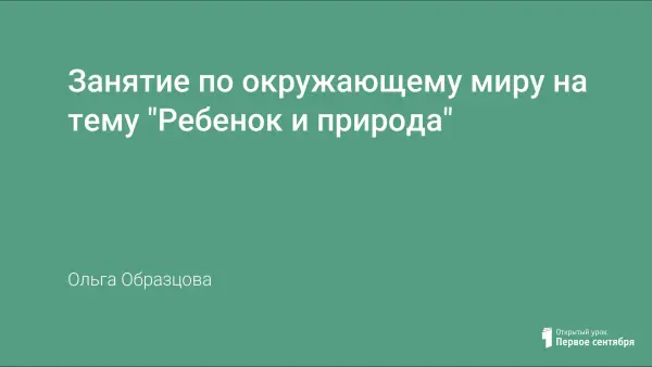 Занятие по ознакомлению с окружающим миром проводится в 2 этапа. На первом этапе у детей развивается понимание того, что планета Земля – наш общий дом, в котором живут звери, птицы, рыбы, насекомые, а человек – часть природы; что на жизнь и здоровье человека и животных влияют чистота водоёмов, почвы, воздушной среды. Целью второго этапа является воспитание у детей природоохранного поведения; развитие представления о том, какие действия вредят природе, портят её, а какие способствуют её восстановлению.