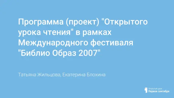 В целях развития у учащихся интереса к чтению на основе мотивирующего примера непосредственного восприятия ими художественного текста и в рамках международного фестиваля "Библио Образ 2007" в ГОУ СОШ № 258 был разработан, организован и проведён "Открытый урок чтения" для разных возрастных категорий обучающихся.