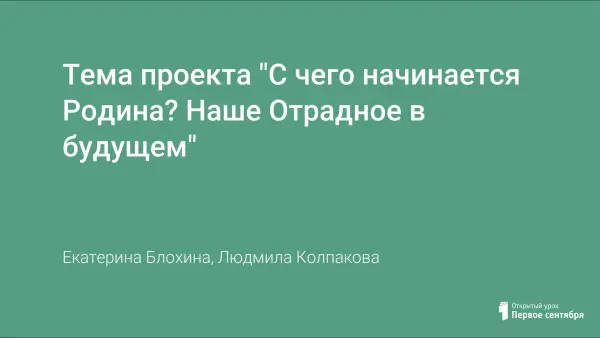 Тема проекта "С чего начинается Родина? Наше Отрадное в будущем"