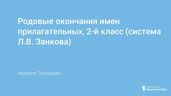 Урок развивает умение устанавливать зависимость рода имени прилагательного от рода имени существительного и умение изменять имена прилагательные по родам, правильно писать окончания имён прилагательных.