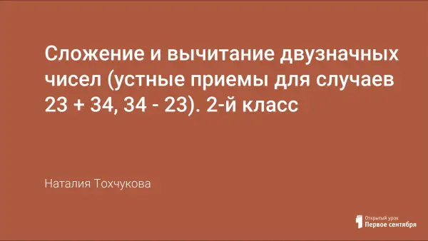 У учащихся формируются представления об устных приёмах сложения и вычитания двузначных чисел, о взаимообратности действий сложения и вычитания для проверки вычислений.