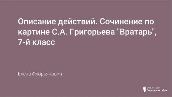 Цели урока: подготовить учащихся к описанию действий людей, изображенных на картине; закрепить умения использовать деепричастия в своей речи; собрать материал для написания сочинения по картине; дать понятие о композиции картины как одном из средств выражения замысла художника.
