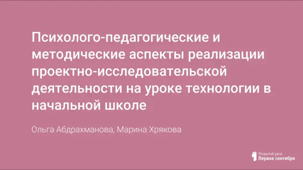 Психолого-педагогические и методические аспекты реализации проектно-исследовательской деятельности на уроке технологии в начальной школе