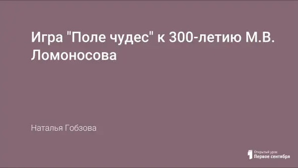 Игра "Поле чудес" к 300-летию М.В. Ломоносова