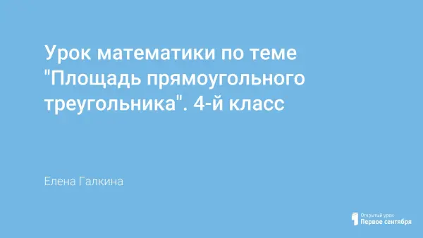В групповом исследовании при помощи рабочего листа-схемы учащиеся 4-го класса выводят формулу нахождения площади прямоугольного треугольника. Тренировочные задания позволяют закрепить знание о нахождении площади прямоугольного треугольника. В стихотворной форме учащимся предлагается познакомиться с такими понятиями, как гипотенуза и катет.