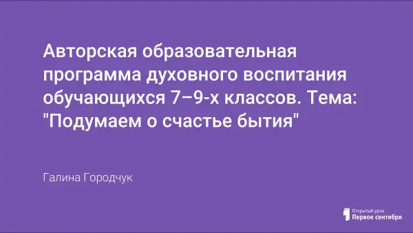 Представлена авторская программа, в которой рассматриваются вопросы духовно-нравственного развития личности. Программа предполагает использование как традиционных методов работы, так и нетрадиционных. Методы занятий предполагают глубокое проникновение в духовный мир подростка, его эмоциональную сферу. Проблемные ситуации, психологические тесты позволяют увидеть сложность и противоречивость человеческой личности, разобраться в собственном «Я».