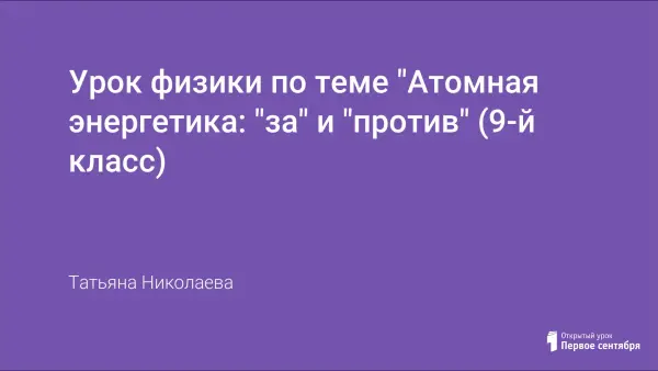 Урок физики по теме "Атомная энергетика: "за" и "против" (9-й класс)