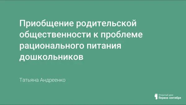 В работе поднят вопрос о роли родителей в организации рационального питания дошкольников.
