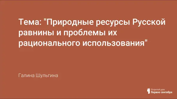 Целями урока являются углубление и расширение знаний о природных ресурсах Русской равнины (видах и их размещении), развитие нравственно-эстетического отношения к природе — к ее красоте и неповторимости.