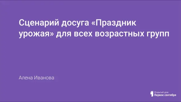 Представлен сценарий досуга «Праздник урожая» для детей дошкольного возраста.