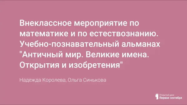 Внеклассное мероприятие по математике и по естествознанию. Учебно-познавательный альманах "Античный мир. Великие имена. Открытия и изобретения"