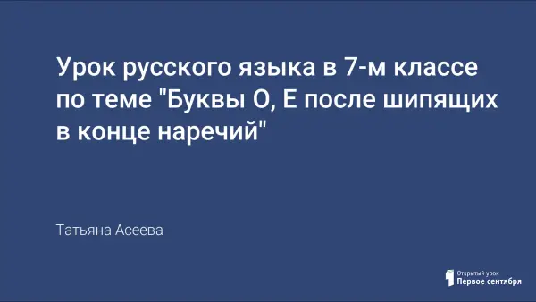 На уроке учащиеся знакомятся с условиями выбора написания О, Е после шипящих на конце наречий.