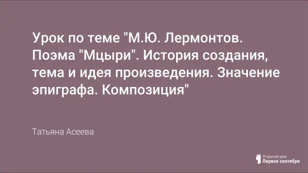 На уроке анализируется поэма "Мцыри", раскрываются особенности характера главного героя, определяются способы изображения образа главного героя поэмы. Систематизируются знания по теме.