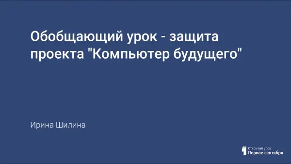 Через проектное обучение у учащихся формируются ключевые компетентности, которые являются основой современного обучения. Проект "Компьютер будущего" учащиеся готовят самостоятельно или в паре, защищают после изучения темы "Устройство компьютера" на обобщающем итоговом уроке в 8-9-х классе. На подготовку проекта отводится 1-2 недели.