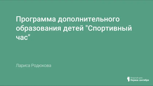Программа дополнительного образования детей составлена на основе материала, который дети получают на уроках физической культуры в школе. Она рассчитана на обучающихся 8–9 лет и предусматривает проведение теоретических и практических занятий. Цель программы: укрепление здоровья, увеличение двигательной активности обучающихся, привитие потребности к систематическим занятиям физическими упражнениями.