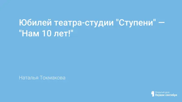Юбилей театра – это подведение итогов творческой работы студии; открытие нового театрального сезона; встреча с выпускниками; новый выпуск студийцев, закончивших обучение по программе «Ступени»; знакомство с новичками; возможность еще раз пережить чувство радости от сделанного, достигнутого, и, конечно, встреча с любимым зрителем, для которого мы существуем.