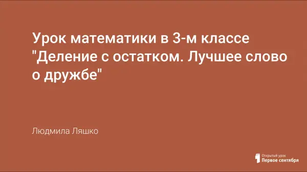 Урок не только поможет детям познакомиться с сутью деления с остатком, но и будет способствовать сплочению классного коллектива, познакомит детей с правилами дружбы, расширит книжный кругозор.