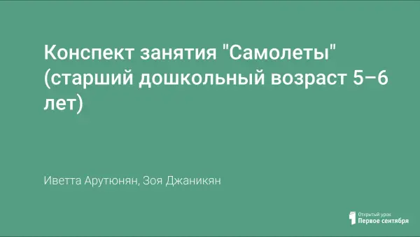 Конспект занятия "Самолеты" (старший дошкольный возраст 5–6 лет)